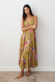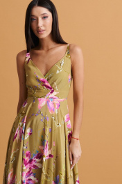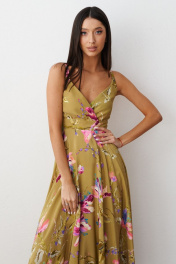 Повседневное зеленое платя из вискозы с цветочным принтом и регулируемыми бретелями ANNETE A3387