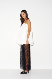 Платье-баллон выполнено из хлопкового полотна белого цвета. Характеристики: верх на резинке со сборкой, подкладка. Длина изделия 57 см.