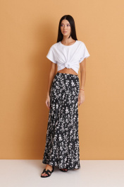 Черная летняя юбка из вискозы с контрастным цветочным принтом ANNETE A410