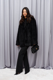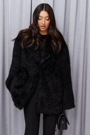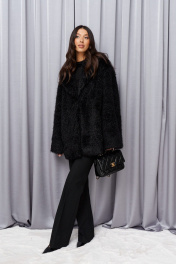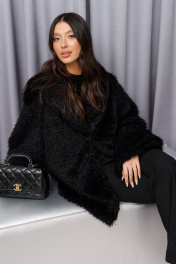 Выполнено из фактурного мехового полотна. Характеристики: прямой крой, брендированная подкладка, застёжка центральная крючки, рукав вточной свободного прямого кроя, в боковых швах карманы. Длина по спинке 77 см, длина рукава от края горловины 75см.