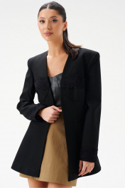 Круглогодичный черный жакет без воротника с кружевами ANNETE A5396