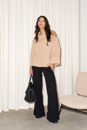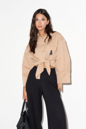Бежевая свободная рубашка с буквой А и разрезами по бокам ANNETE A974