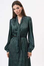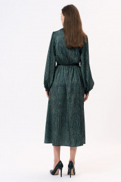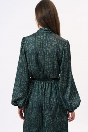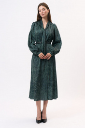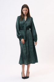 Это платье полуприлегающего силуэта изготовлено из легкой шелковистой ткани, что придает ему изысканный и элегантный вид. Оно подчеркнет женственность и изящество его обладательницы. Платье имеет отрезную линию талии, которая акцентирует внимание на самой тонкой части фигуры, создавая эффектную силуэтную форму. Эластичная тесьма на талии обеспечивает комфортную посадку и подчеркивает изгибы тела. Горловина платья имеет V-образную форму, что придает ему изысканность и делает его более привлекательным. Этот дизайн акцентирует внимание на шею и декольте, придавая образу женственности и стиля. Длинные втачные рукава платья украшены сборками и манжетами, что добавляет некую игривость и легкость к общему образу. Эти детали делают рукава более объемными и привлекательными, придавая платью неповторимый шарм и элегантность. Важно отметить, что оттенок платья на фотографии может незначительно отличаться из-за цветопередачи монитора. Это платье подходит для различных мероприятий, начиная от вечерних выходов и заканчивая деловыми встречами. . Состав ткани:Вискоза: 50%, Шелк: 30%, Полиэстер: 20% Длина по центру спинки (см): 127, 127, 127, 127 По груди (см): 51, 53, 55, 57 По бедрам (см): 56, 60, 62 По талии (см): 50, 52, 54, 56 Длина рукава (см): 65, 65, 65, 65 Ширина рукава (см): 21.3, 22, 22.7, 23.4 Ширина плеча (см): 10.5, 10.7, 10.9, 11.1 Ширина спинки (см): 35, 36, 37, 38