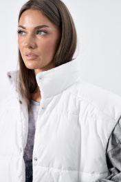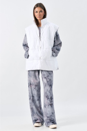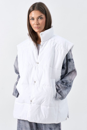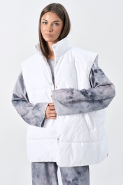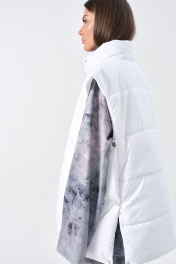 Жилет прямого силуэта изготовлена из непродуваемой плащевой ткани, на синтепоне. На переде обработаны прорезные карманы. Застежка центральная на кнопках. Возможно отличие фотографии по оттенку, связанное с разной цветопередачей монитора.