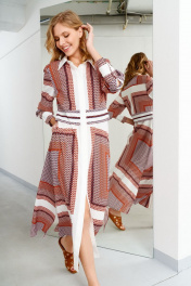 Шикарное неповторимое платье из легкой и драпирующейся ткани с дизайнерским принтом. Платье-рубашка с центральной потайной застежкой на петли и пуговицы, в боковых швах обработаны разрезы. Рукав втачной с манжетой. По шву притачивания лифа обработан отлетной пояс. Возможно отличие фотографии по оттенку, связанное с разной цветопередачей монитора.