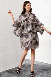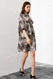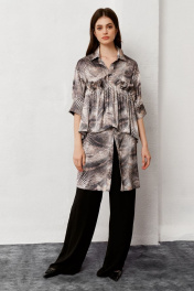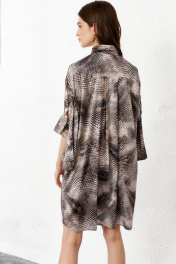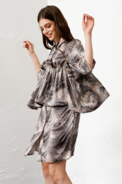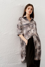 Анималистичные и змеиные принты - достаточно сложны в стилизации. Не все решаются добавить в свой образ элемент леопарда или змеи. Это всегда немного про вызов и смелость. Но надевая такой наряд, гарантировано одно - без внимания вы не останетесь. Шелковое платье-рубашка - прямого силуэта. В боковых швах обработаны карманы. Застежка центральная на петли и пуговицы. Рукав рубашечного кроя, короткий с манжетой. Воротник рубашечный. Особенностью платья является съемная рюша, которая сделает ваш образ разнообразным и неповторимым. Возможно отличие фотографии по оттенку, связанное с различной цветопередачей монитора. Длина по центру спинки : , 93см., 93см., 93см., 93см., 93см., 93см. По груди : , 52см., 54см., 56см., 58см., 60см., 62см. По бедрам : , 52см., 54см., 56см., 58см., 60см., 62см. Длина рукава : , 28см., 28см., 28см., 28см., 28см., 28см. Ширина рукава : , 20см., 20.6см., 21.3см., 22см., 22.7см., 23.4см.