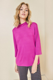 Розовый джемпер из тонкого трикотажа с воротом-стойкой Art Ribbon M3697T_1