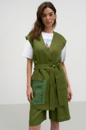 Льняной жилет прямого силуэта с прорезным карманом Art Ribbon M3816J