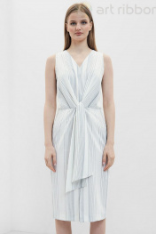 Платье в полоску настолько же универсально, как и маленькое черное платье. Это наряд на все времена, подходящий современным женщинам. Платье полуприлегающего силуэта с оригинальным поясом, который делает изделие необычным и интересным. Перед и спинка со средним швом, на юбке переда обработан разрез. Горловина V-образной формы. В боковом шве обработана застежка на потайную тесьму-молнию. Возможно отличие фотографии по оттенку, связанное с разной цветопередачей монитора. Длина по центру спинки : , 97см., 97см., 97см. По груди : , 48см., 50см., 52см. По бедрам : , 49см., 51см., 53см. По талии : , 37см., 39см., 41см. Ширина плеча : , 5.3см., 5.5см., 5.7см. Ширина спинки : , 32см., 33см., 34см.