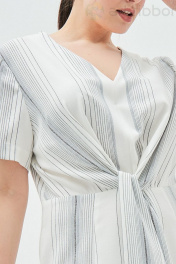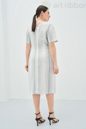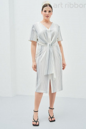 Платье в полоску - это тренд, который сохраняет свою актуальность с момента появления этого геометрического принта. Вертикальная полоска убирает объем и вытягивает силуэт, выгодно подчеркивает достоинства фигуры. . Платье полуприлегающего силуэта с оригинальным поясом, который делает изделие необычным и интересным. Перед и спинка со средним швом, на юбке переда обработан разрез. Горловина V-образной формы, рукав короткий втачной. В боковом шве обработана застежка на потайную тесьму-молнию. Возможно отличие фотографии по оттенку, связанное с разной цветопередачей монитора. Длина по центру спинки : , 97см., 97см., 97см., 97см. По груди : , 54см., 56см., 58см., 60см. По бедрам : , 55см., 57см., 59см., 61см. По талии : , 43см., 45см., 47см., 49см. Длина рукава : , 24см., 24см., 24см., 24см. Ширина рукава : , 19.7см., 20.4см., 21.1см., 21.8см. Ширина плеча : , 13.2см., 13.4см., 13.6см., 13.8см. Ширина спинки : , 39см., 40см., 41см., 42см.
