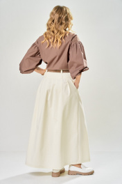 Наша юбка-макси выполнена из натурального хлопка и: — держит форму и визуально стройнит. — в ней комфортно весь день (никакой синтетики!). — это инвестиция в гардероб на годы, а не на один сезон. Носим с базовыми майками, объемными рубашками или создаем total denim look. Юбка женская длиной макси А-силуэта, с застежкой на потайную тесьму-молнию в левом боковом шве. Юбка без подкладки. Перед и зад с кокеткой, от шва обработаны односторонние складки. Кокетки со шлевками. По переднему полотнищу обработаны боковые карманы со скосом.