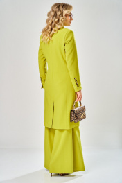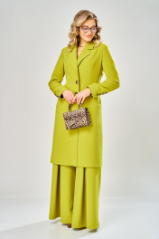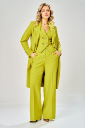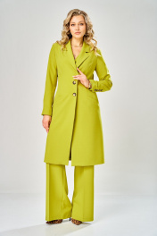 Жакет удлиненный, выполнен из текстильной ткани, на подкладке. Жакет прямого силуэта, слегка расширенный к низу, с центральной бортовой застежкой на две прорезные петли и пуговицы. Перед с рельефом, выходящим из проймы до линии входа в карман. Карман прорезной с листочкой. Спинка с рельефом от проймы до низа, со средним швом внизу которого обработана шлица. Рукава втачные, двухшовные с передним и локтевым швами. В нижней части локтевого шва обработана закрытая шлица с 4 пуговицами. Воротник пиджачного типа с отложными лацканами. Жакет с плечевыми накладками. Длина жакета 108 см, длина рукава 61 см.
