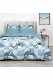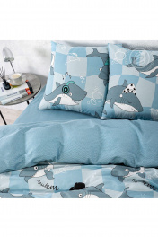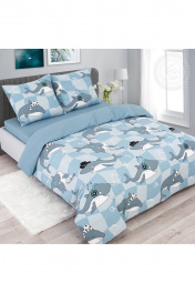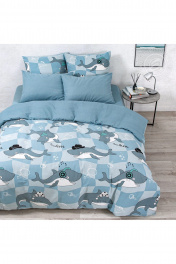 Комплект постельных принадлежностей из хлопка голубой на 1,5-спальный АРТПОСТЕЛЬ 504А гавань