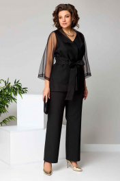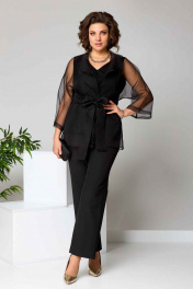 Костюм брючный (тройка) женский свободного силуэта,состоит из блузки, топа и брюк.Блузка выполнена из органзы. Отложной воротник-шаль, рукав покроя "летучая мышь" с манжетом. Блузка под пояс. Топ с V-образным вырезом, по переду кокетки, из-под которых складки. Брюки классические, на поясе с резинкой. Застежка на гульфик, на тесьму-молнию. Вверху косые карманы. Рукав 3/4 Длина изделия - блузка - 71 (±1) см., брюки - 101 (±2) см., топ - 61 (±2) см. Объём груди блузка: размер 50 – 106 (±2) см.; размер 52 – 110 (±2) см.; размер 54 – 114 (±2) см. топ: размер 50 – 108 (±2) см.; размер 52 – 112 (±2) см.; размер 54 – 116 (±2) см. Объём талии брюки: размер 50 – 82 (±2) см.; размер 52 – 86 (±2) см.; размер 54 – 90 (±2) см. топ: размер 50 – 108 (±2) см.; размер 52 – 112 (±2) см.; размер 54 – 116 (±2) см. Объём бёдер размер 50 – 106 (±2) см.; размер 52 – 110 (±2) см.; размер 54 – 114 (±2) см. брюки: размер 50 – 108 (±2) см.; размер 52 – 112(±2) см.; размер 54 – 116 (±2) см. Ширина рукава под проймой размер 50 – 24 (±1) см.; размер 52 – 25 (±1) см.; размер 54 – 26 (±1) см. Ширина спинки 42 (±1) см.