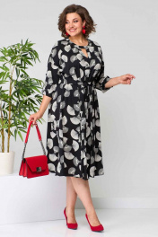 Платье полуприлегающего силуэта из вискозы с поясом и длинным рукавом Асолия 2636
