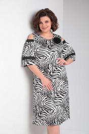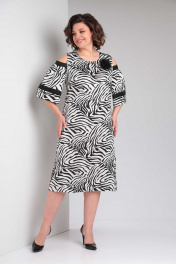 Платье женское нарядно-повседневное свободного силуэта. Выполнено из плательной ткани двух фактур. Горловина округла, рукав три четверти, по плечу спущен на полпроймы. Рукав типа "баллон" на подкладке, вверху планка, из-под нее складки. По низу рукава отделочная вставка. Перед с нагрудными вытачками. Спинка свободная. По низу боковых швов два разреза. К платью прилагается съемное украшение в виде цветка. Коллекция весна-лето 2024 Рост 164 см. Цвет бело-черный Размерный ряд 50-54 Тип ткани плательная ткань Вид изделия платье Рукав 3/4 Состав ПЭ-96%, эластан-4% Сезон весна-лето Вырез горловины округлый Длина изделия 113,00 (±2) см. Длина рукава 42 (±1) см. Статус модели нарядно-повседневный Силуэт свободный Объём груди размер 50 – 108 (±2) см. размер 52 – 112 (±2) см. размер 54 – 116 (±2) см. Объём талии размер 50 – 102 (±2) см. размер 52 – 106 (±2) см. размер 54 – 110 (±2) см. Объём бёдер размер 50 – 112 (±2) см. размер 52 – 116 (±2) см. размер 54 – 118 (±2) см. Ширина рукава под проймой размер 50 – 22 (±2) см. размер 52 – 24 (±2) см. размер 54 – 26 (±2) см. Ширина спинки 39 (±1) см.