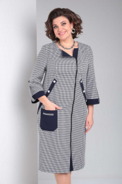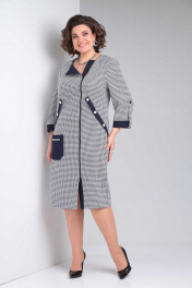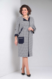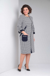 Платье женское повседневное полуприлегающего силуэта из плательной ткани двух видов. Изделие с асимметричной застежкой на "молнию" по переду. Под молнией планка из отделочной ткани. Из проймы до линии бедра рельефы с отделочной планкой на пуговицы. Ниже уровня талии асимметричный накладной карман с рамкой. Рукава одношовные с манжетами, на пату с пуговицей. Спинка свободная. Вырез горловины округлый Длина изделия 110,00 (±2) см. Длина рукава 50 (±1) см. Статус модели повседневный Силуэт полуприлегающий Объём груди размер 52 – 112 (±2) см. размер 54 – 116 (±2) см. размер 56 – 120 (±2) см. Объём талии размер 52 – 106 (±2) см. размер 54 – 110 (±2) см. размер 56 – 114 (±2) см. Объём бёдер размер 52 – 112 (±2) см. размер 54 – 116 (±2) см. размер 56 – 120 (±2) см. Ширина рукава под проймой размер 52 – 19 (±2) см. размер 54 – 20 (±2) см. размер 56 – 21 (±2) см.