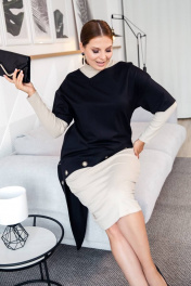 Комплект платье и туника с асимметричным вырезом ASV 2620 черно-бежевый