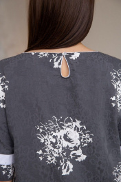 Платье комбинированное заужен-ного силуэта с коротким рукавом. Горловина округлая расширенная. По переду вертикальный рельеф. Карманы в боковых швах. Тип карманов: в шве Вид застежки: пуговицы Длина изделия по спинке: 97 см