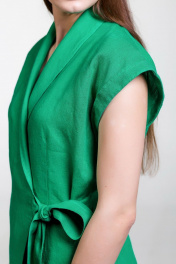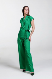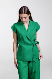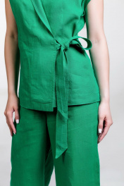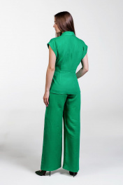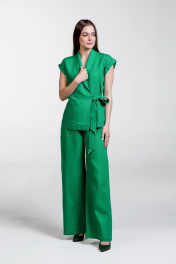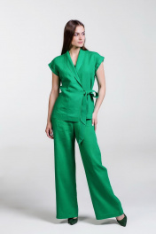 Деловой летний костюм из льна жакет и брюки палаццо с резинкой Atelero 1001 зеленый