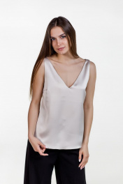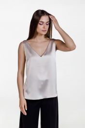 Бежевый шелковый топ с глубоким вырезом Atelero 1022 бежевый