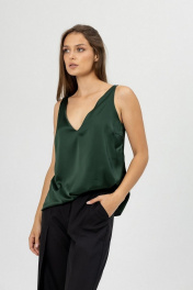 Базовый топ из струящегося шелка с глубоким вырезом Atelero 1022 изумруд
