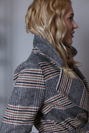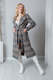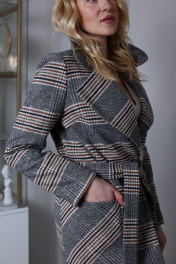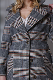 Пальто демисезонное классическое с поясом и карманами Atelero 1034 клетка