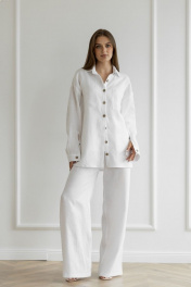 Белая рубашка из льна со спущенным плечом и шлицей Atelero 1057 белый