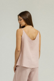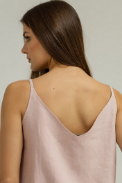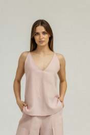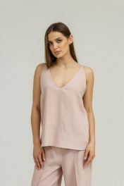 Льняной топ с глубоким V-образным вырезом и тонкими бретелями Atelero 1080 пудровый