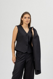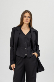 Черный костюм из текстиля с жакетом, брюками и жилетом Atelero 1082Ш черный