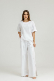 Брюки палаццо из льна с разрезом и складками Atelero 1085ЛБ белый