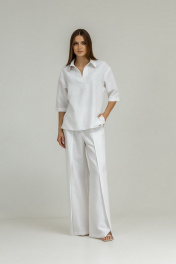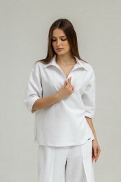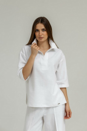 Белая блуза из льна с рукавом 3/4 и декоративными швами Atelero 1099 белый