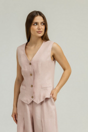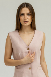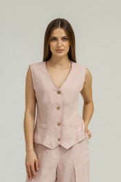 Жилет из льна с глубоким вырезом и пуговицами Atelero 1103П пудровый