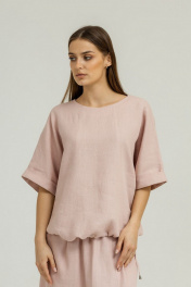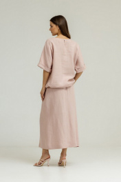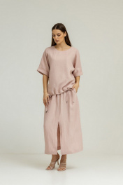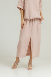 Розовый льняной комплект блуза и юбка с карманами Atelero 1105П пудровый