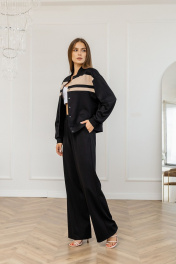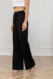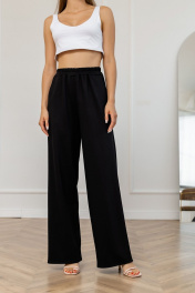 Брюки выполнены из мягкого и очень приятного вискозного трикотажа. Брюки прямые, высокой посадки с карманами в боковых швах, по талии на резинке.