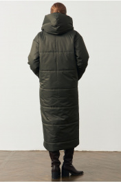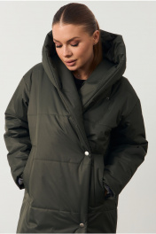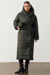 Пальто из плащёвой ткани с водоотталкивающей пропиткой.Пальто двубортное, с застежкой на кнопки. Рукав спущенный. Пальто на синтепоне. Пальто с капюшоном. В комплекте съемный пояс. Длина изделия 126 см