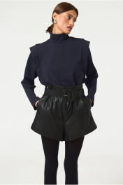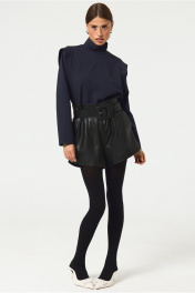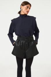 Шорты в длине мини из экокожи. Посадка высокая, по талии декоративные выточки, потайная молния по спинке изделия. Длина по спинке 42.