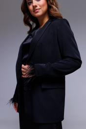 жакет черный однобортный с перьями съёмными на рукавах