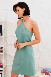 Мини сарафан с завязками и вырезом американской проймы AURA otd 3256 шалфей