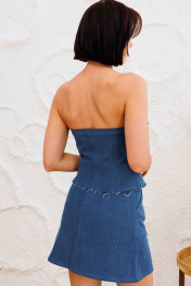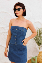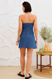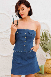 Летняя мини-юбка из хлопка с потайной молнией и накладными карманами AURA otd 5060 темно-синий деним