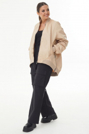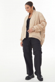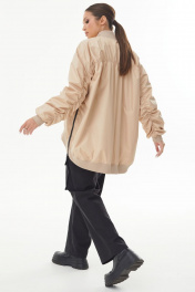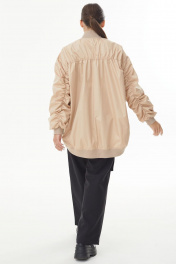 Куртка-бомбер из бежевой плащевки со сборкой по спинке и рукаву сзади.