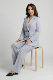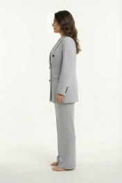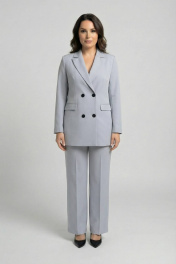 Деловая тройка из хлопка с прямыми брюками и двубортным жакетом AURA otd 9176 светло-серый