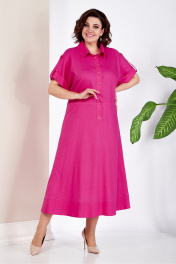 Льняное платье с полусолнцем и пуговицами на линию талии AVA fashion М-048