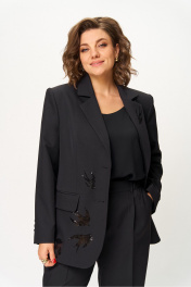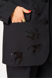 Представляем вашему вниманию стильный женский костюм, который станет отличным дополнением к вашему гардеробу. Этот элегантный комплект состоит из пиджака и укороченных зауженных брюк, идеально подходящих для любого мероприятия — от деловых встреч до вечеринок. Пиджак отличается утонченным дизайном с воротником пиджачного типа и прорезными карманами, что добавляет практичности и стиля. Спинка с шлицей обеспечивает удобство и свободу движений, а рукава со шлицей придают дополнительный шик. Брюки имеют зауженный к низу силуэт с модными разрезами, создавая современный и привлекательный вид. Особую изюминку добавляет вышивка из пайеток, которая придает костюму вечерний блеск и запоминающийся акцент. Этот костюм идеально сочетается как с классическими, так и с более креативными аксессуарами. Вы обязательно привлечете всеобщее внимание и подчеркнете свою индивидуальность и стиль. Длина жакета-73 см, длина брюк-100 см.