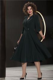 Вечернее платье полуприлегающего силуэта. Ткань костюмно-плательная средней плотности, немного тянется. Брошь съемная. Застежка на молнию в боковом шве. Длина изделия 128 см, рукава 43 см