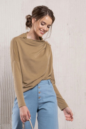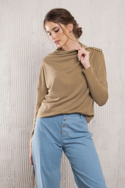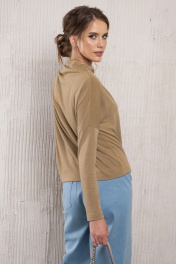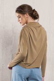 Бежевый трикотажный джемпер асимметричного кроя с воротником-стойкой Avanti С-116