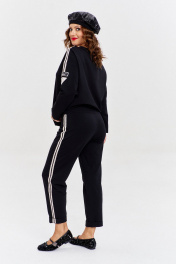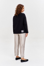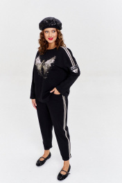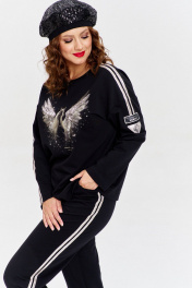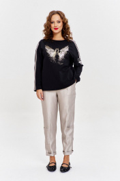 Свитшот из футера двухнитки, свободного силуэта, с длинным рукавом и круглой горловиной. Изделие декорировано эффектным авторским принтом и золотистыми лампасами из ленты с пайетками.