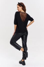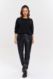 Экокожаные брюки с карманами и бахромой AVE RARA 4134 черный