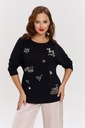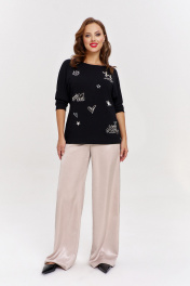 Брюки палаццо из струящегося шелка с перламутровым отливом, с боковыми карманами спереди и отрезной кокеткой сзади. Застежка на молнию, пояс с резинкой по спинке. Боковые швы декорированы контрастными лампасами со стразами.