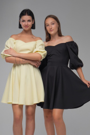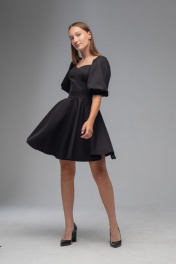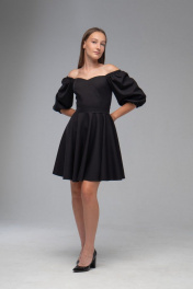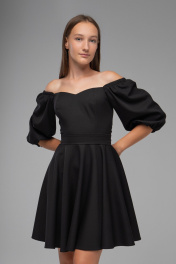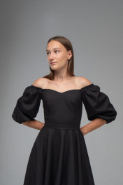 Нарядное платье с двойным лифом и рукавами буфами AVEEVA 5294 черный